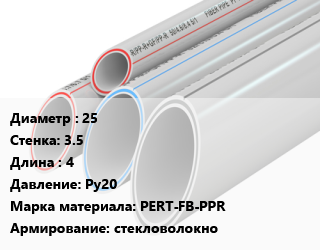 Труба полипропиленовая 25 s=3.5 L=4 Ру20 PERT-FB-PPR стекловолокно