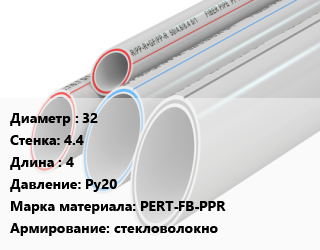 Труба полипропиленовая 32 s=4.4 L=4 Ру20 PERT-FB-PPR стекловолокно