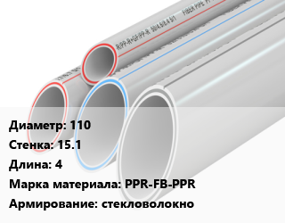 Труба полипропиленовая 110 s=15.1 L=4 PPR-FB-PPR стекловолокно