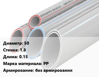 Труба полипропиленовая 50 s=1.8 L=0.15 PP без армирования