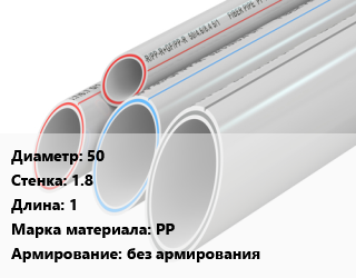 Труба полипропиленовая 50 s=1.8 L=1 PP без армирования