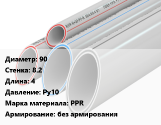 Труба полипропиленовая 90 s=8.2 L=4 Ру10 PPR без армирования