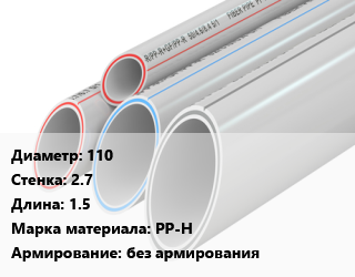 Труба полипропиленовая 110 s=2.7 L=1.5 PP-H без армирования