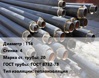 Труба предизолированная 114 s=4 Сталь: 20 ГОСТ: ГОСТ 8732-78 теплоизоляция