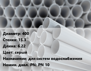 Труба ПВХ, поливинилхлорид 400 s=15.3 L=6.22 серый для систем водоснабжения PN 10