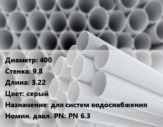 Труба ПВХ, поливинилхлорид 400 s=9.8 L=3.22 серый для систем водоснабжения PN 6.3