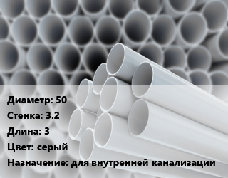 Труба ПВХ, поливинилхлорид 50 s=3.2 L=3 серый для внутренней канализации