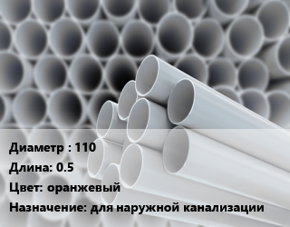 Труба ПВХ, поливинилхлорид 110 L=0.5 оранжевый для наружной канализации