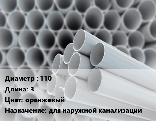 Труба ПВХ, поливинилхлорид 110 L=3 оранжевый для наружной канализации