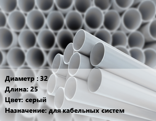Труба ПВХ, поливинилхлорид 32 L=25 серый для кабельных систем
