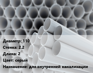 Труба ПВХ, поливинилхлорид 110 s=2.2 L=2 серый для внутренней канализации