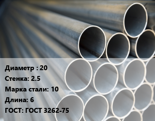 Труба водогазопроводная ВГП 20 s=2.5 Сталь: 10 L=6 ГОСТ: ГОСТ 3262-75