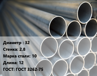 Труба водогазопроводная ВГП 32 s=2.8 Сталь: 10 L=12 ГОСТ: ГОСТ 3262-75, м/д цена от 59 940 сом / т, где купить, условия доставки в Бишкеке и Чуйской области
