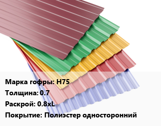 Профнастил с полимерным покрытием Н75 s=0.7 0.8хL Покрытие:Полиэстер односторонний
