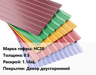 Профнастил с полимерным покрытием НС20 s=0.5 1.16хL Покрытие:Декор двусторонний