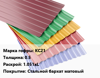 Профнастил с полимерным покрытием КС21 s=0.5 1.051хL Покрытие:Стальной бархат матовый