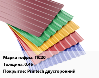 Профнастил с полимерным покрытием ПС20 s=0.45 Покрытие:Printech двусторонний