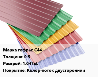 Профнастил с полимерным покрытием С44 s=0.5 1.047хL Покрытие:Колор-поток двусторонний