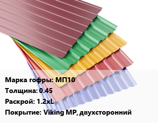 Профнастил с полимерным покрытием МП10 s=0.45 1.2хL Покрытие:Viking MP, двухсторонний