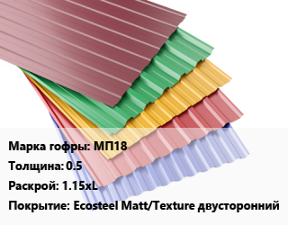 Профнастил с полимерным покрытием МП18 s=0.5 1.15xL Покрытие:Ecosteel Matt/Teхture двусторонний