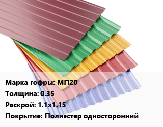 Профнастил с полимерным покрытием МП20 s=0.35 1.1х1.15 Покрытие:Полиэстер односторонний