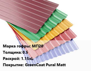 Профнастил с полимерным покрытием МП20 s=0.5 1.15хL Покрытие:GreenCoat Pural Matt