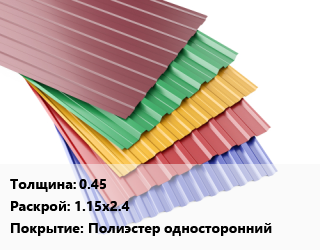 Профнастил с полимерным покрытием 0.45 1.15х2.4 Покрытие:Полиэстер односторонний