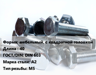 Болт мебельный, с квадратной головкойх40 DIN 603 Сталь: А2 М5