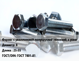 Болт с увеличенной полукруглой головкой, с усом 8х25-55 ГОСТ 7801-81