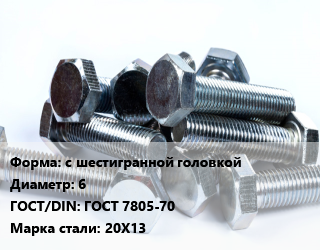 Болт с шестигранной головкой 6 ГОСТ 7805-70 Сталь: 20Х13