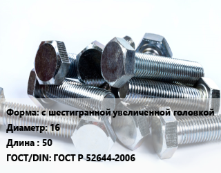 Болт с шестигранной увеличенной головкой 16х50 ГОСТ Р 52644-2006