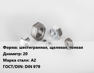 Гайка шестигранная, щелевая, тонкая D=20 Сталь: А2 DIN 979