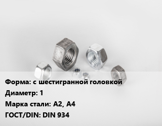 Гайка с шестигранной головкой D=1 Сталь: А2, А4 DIN 934