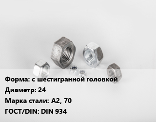 Гайка с шестигранной головкой D=24 Сталь: А2, 70 DIN 934