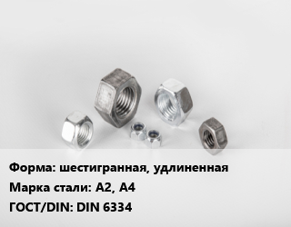 Гайка шестигранная, удлиненная Сталь: А2, А4 DIN 6334