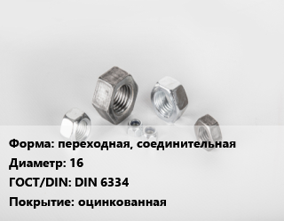 Гайка переходная, соединительная D=16 DIN 6334 оцинкованная