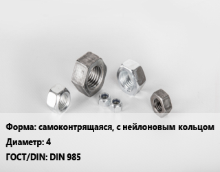 Гайка самоконтрящаяся, с нейлоновым кольцом D=4 DIN 985