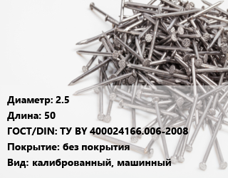 Гвоздь 2.5х50 ГОСТ: ТУ BY 400024166.006-2008 без покрытия калиброванный, машинный