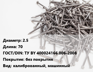 Гвоздь 2.5х70 ГОСТ: ТУ BY 400024166.006-2008 без покрытия калиброванный, машинный