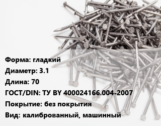 Гвоздь гладкий 3.1х70 ГОСТ: ТУ BY 400024166.004-2007 без покрытия калиброванный, машинный
