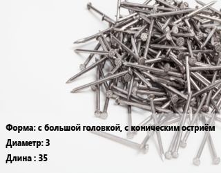 Гвоздь с большой головкой, с коническим остриём 3х35 оцинкованный винтовой