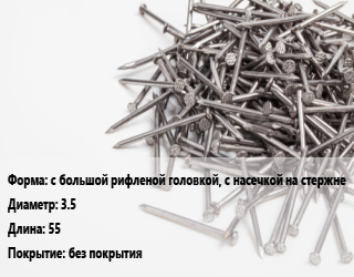 Гвоздь с большой рифленой головкой, с насечкой на стержне 3.5х55 без покрытия