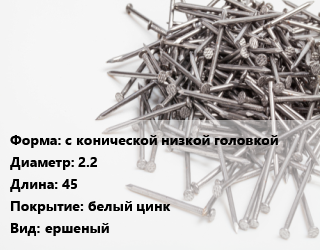 Гвоздь с конической низкой головкой 2.2х45 белый цинк ершеный