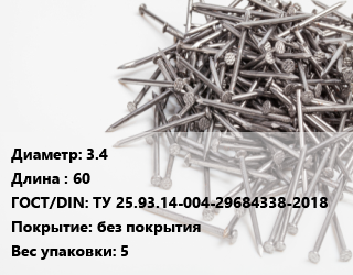 Гвоздь 3.4х60 ГОСТ: ТУ 25.93.14-004-29684338-2018 без покрытия 5