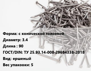 Гвоздь с конической головкой 3.4х90 ГОСТ: ТУ 25.93.14-008-29684338-2018 ершеный 5