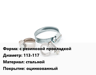 Хомут с резиновой прокладкой D=113-117 стальной оцинкованный