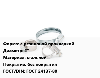 Хомут с резиновой прокладкой D=2" стальной без покрытия ГОСТ: ГОСТ 24137-80
