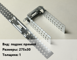 Крепление для металлического профиля подвес прямой 275х30 s=1 сталь без покрытия