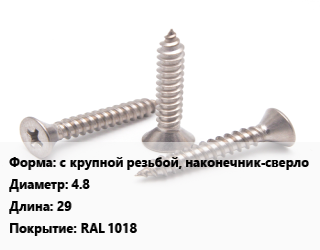 Саморез с крупной резьбой, наконечник-сверло D=4.8 L=29 RAL 1018