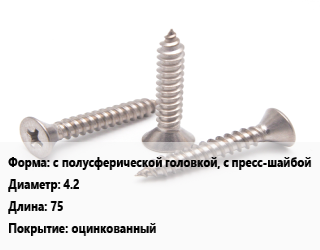 Саморез с полусферической головкой, с пресс-шайбой D=4.2 L=75 оцинкованный